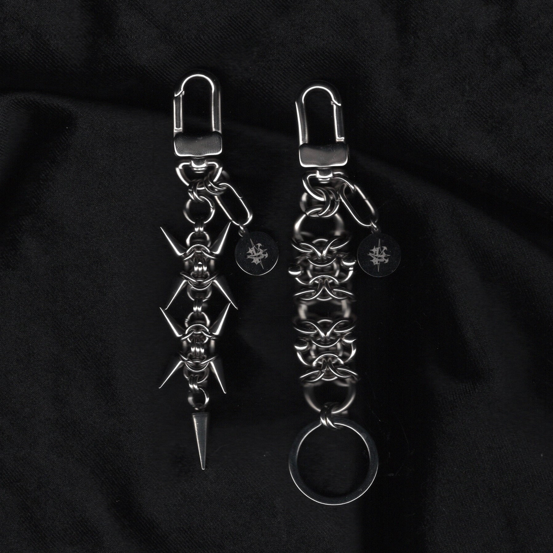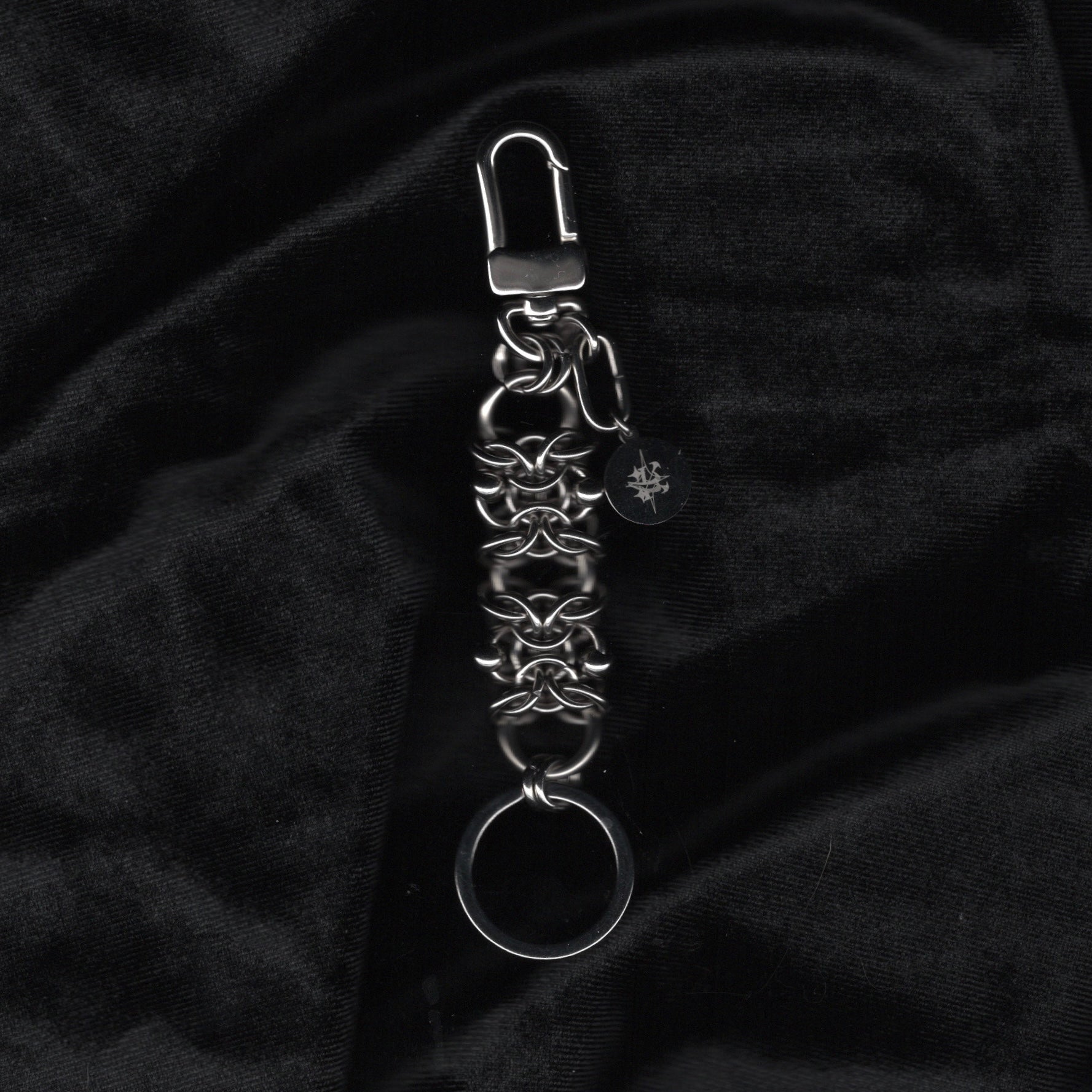 Handmade chainmail keychain featuring a spikey weave. Pairs perfectly with the Adventus Earrings.