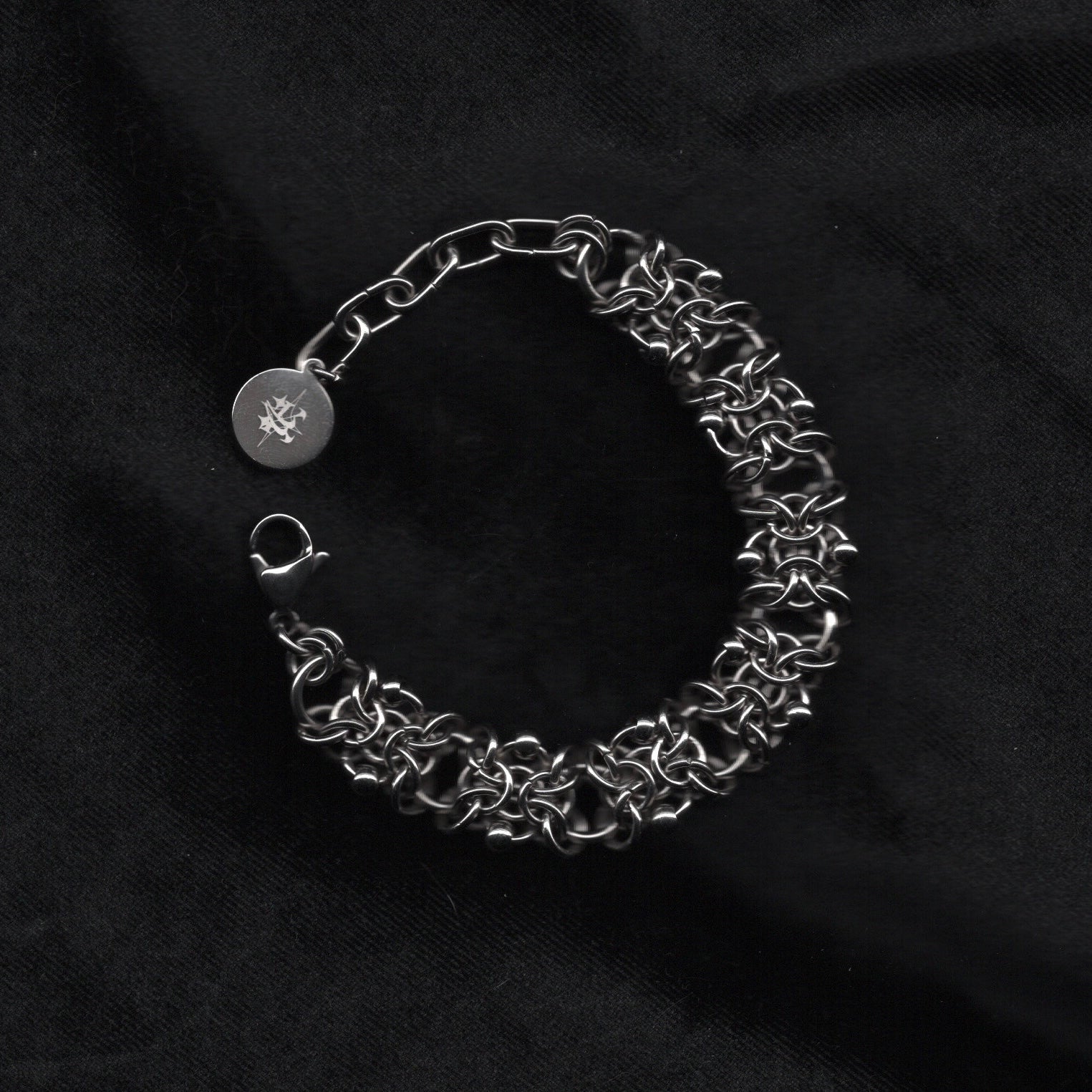 This handcrafted bracelet is a stunning alternative to traditional pieces, with a gothic pierced chainmaille design and stainless steel construction. Elevate your accessory collection with this unique piece.