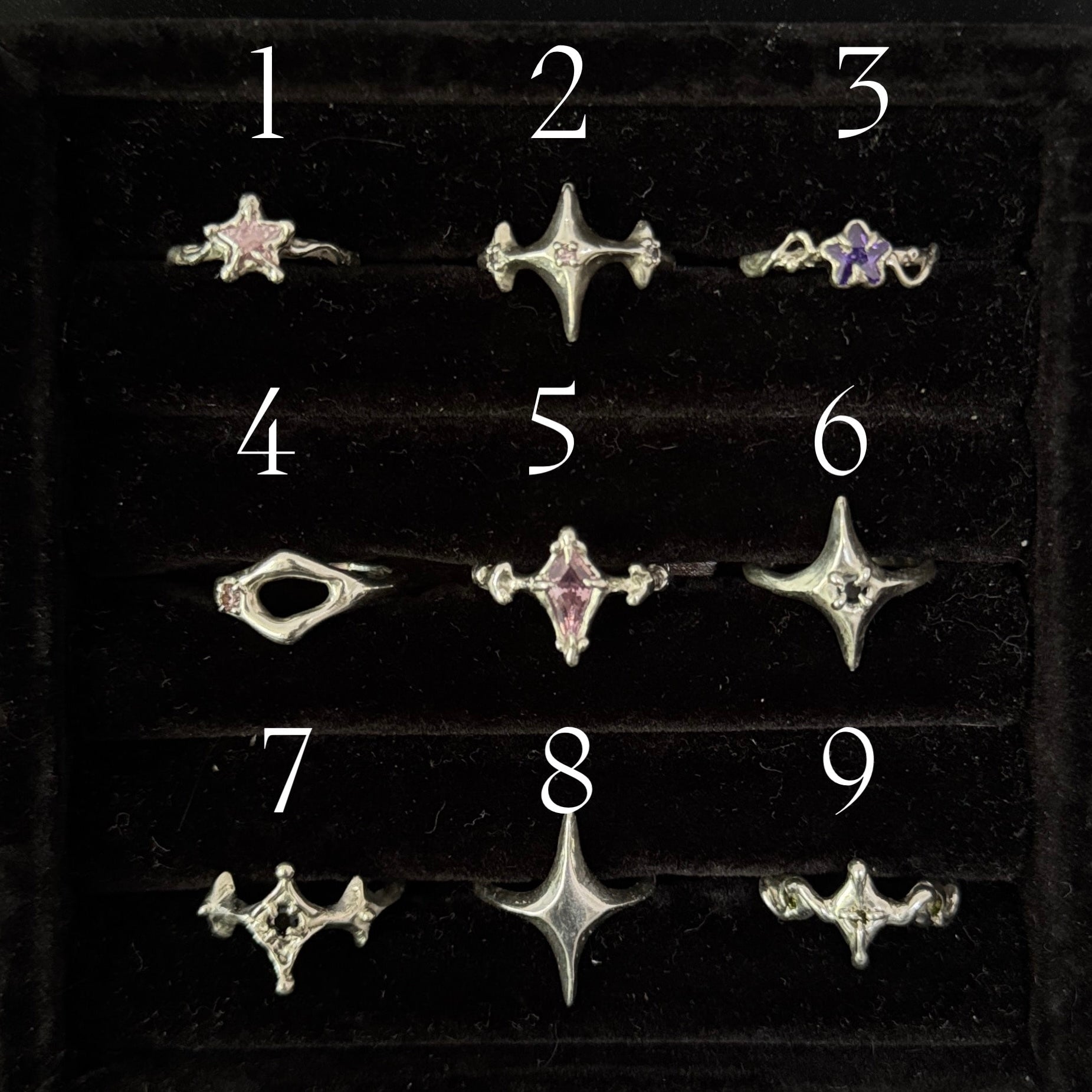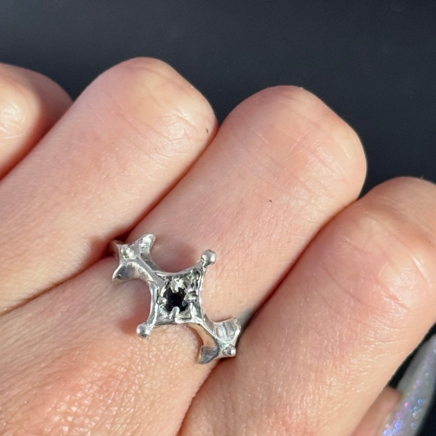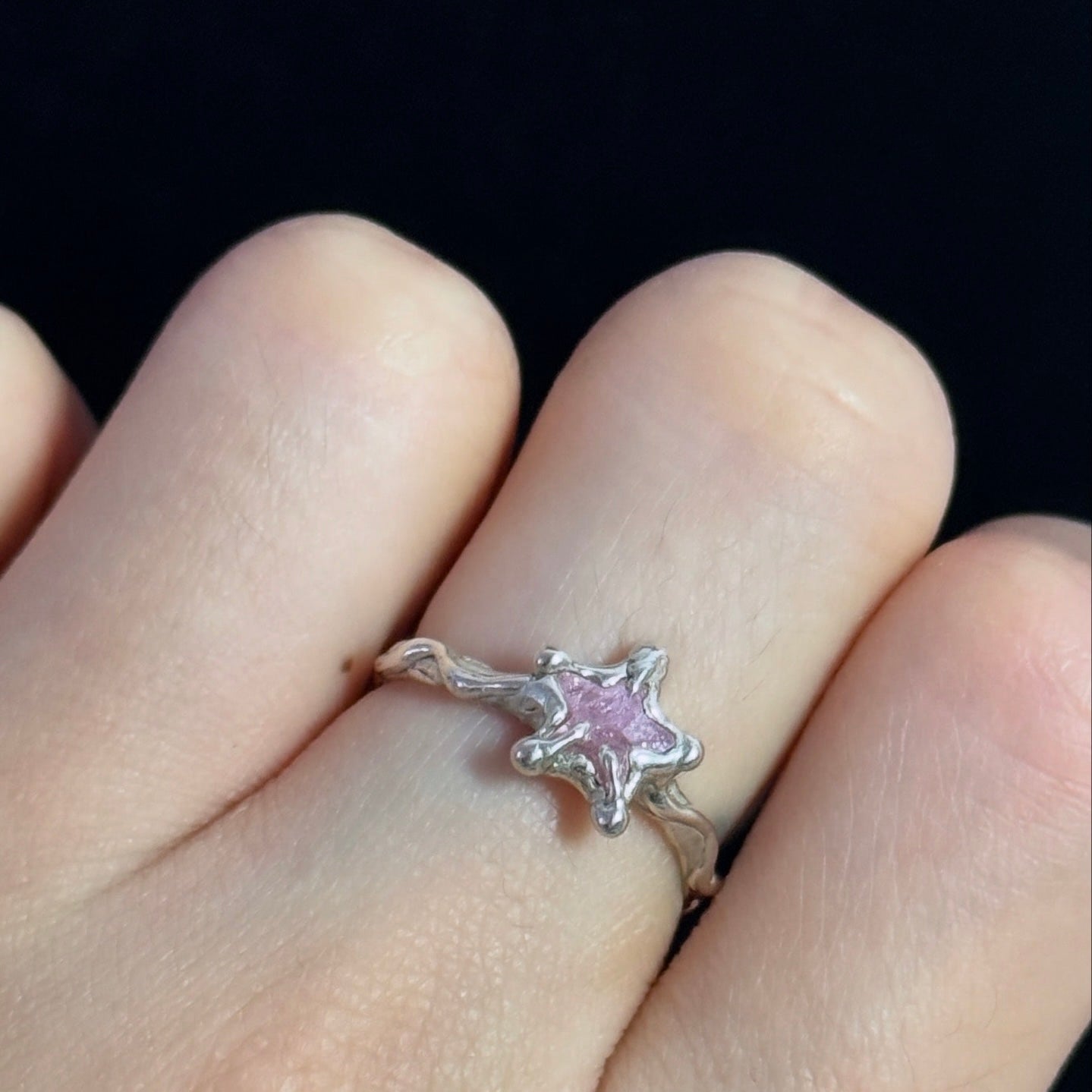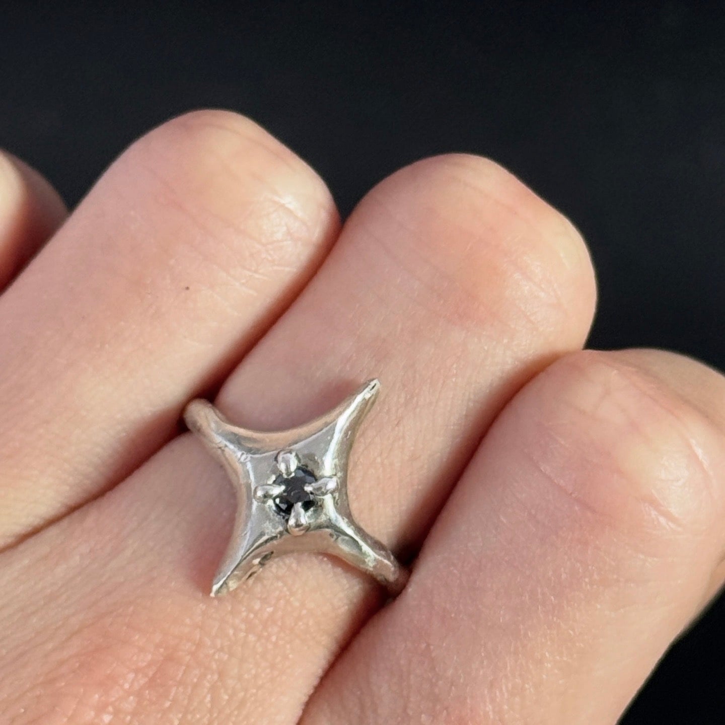 Handmade with recycled 925 sterling silver, these one off star rings feature textured patterning and unique gemstones that pair with crisp star shapes.