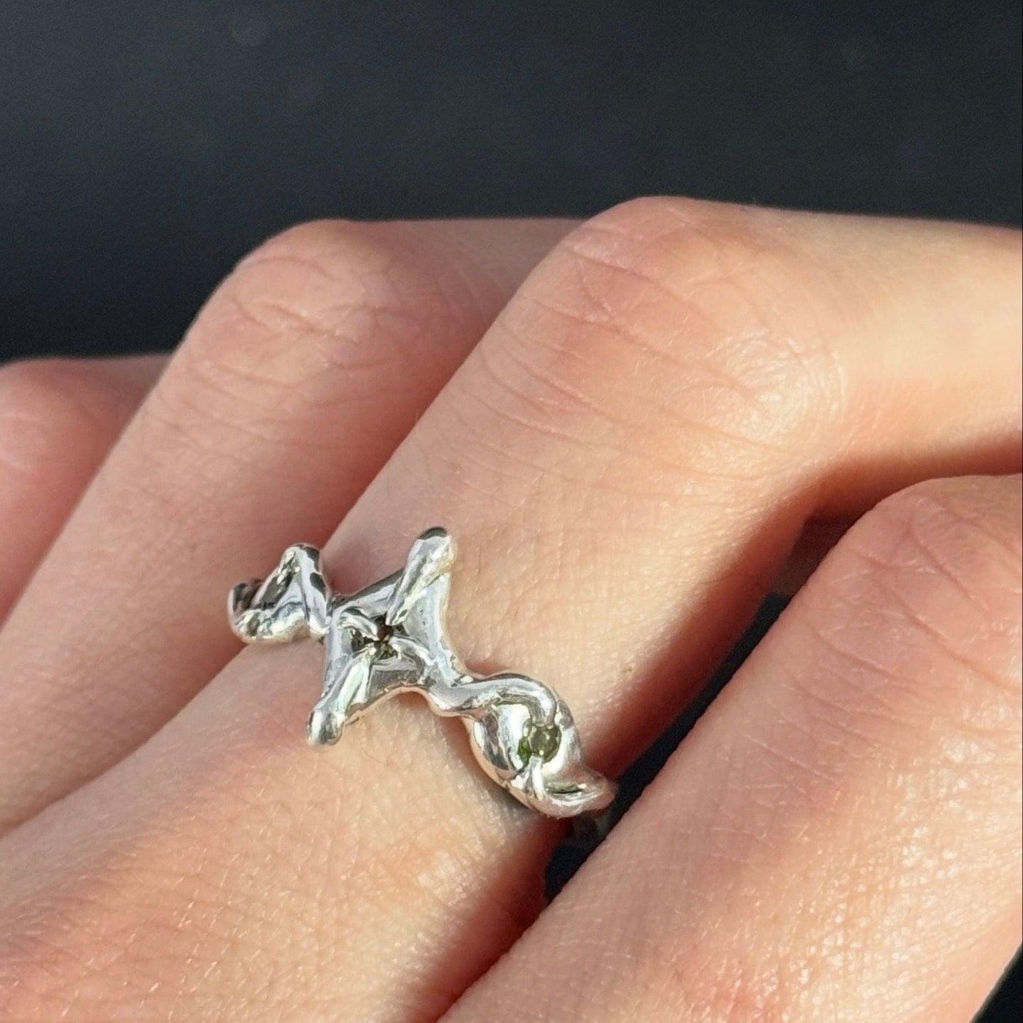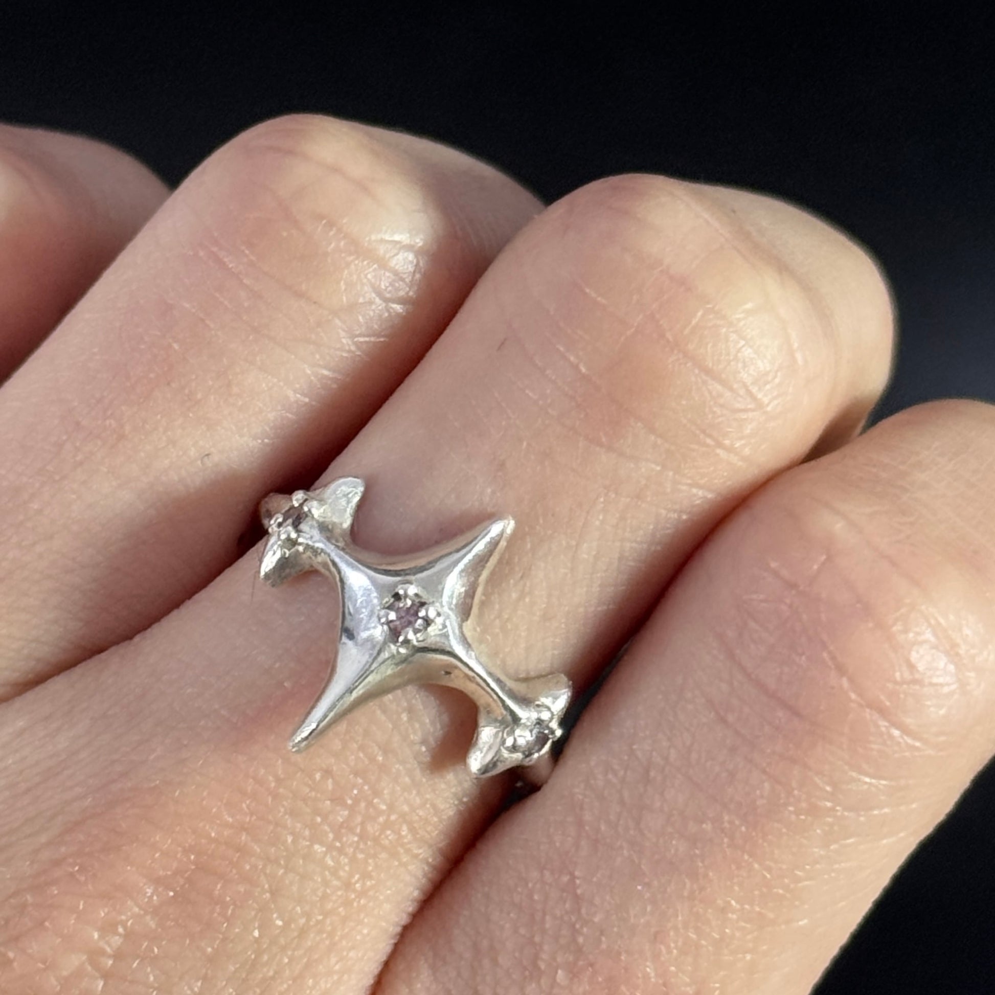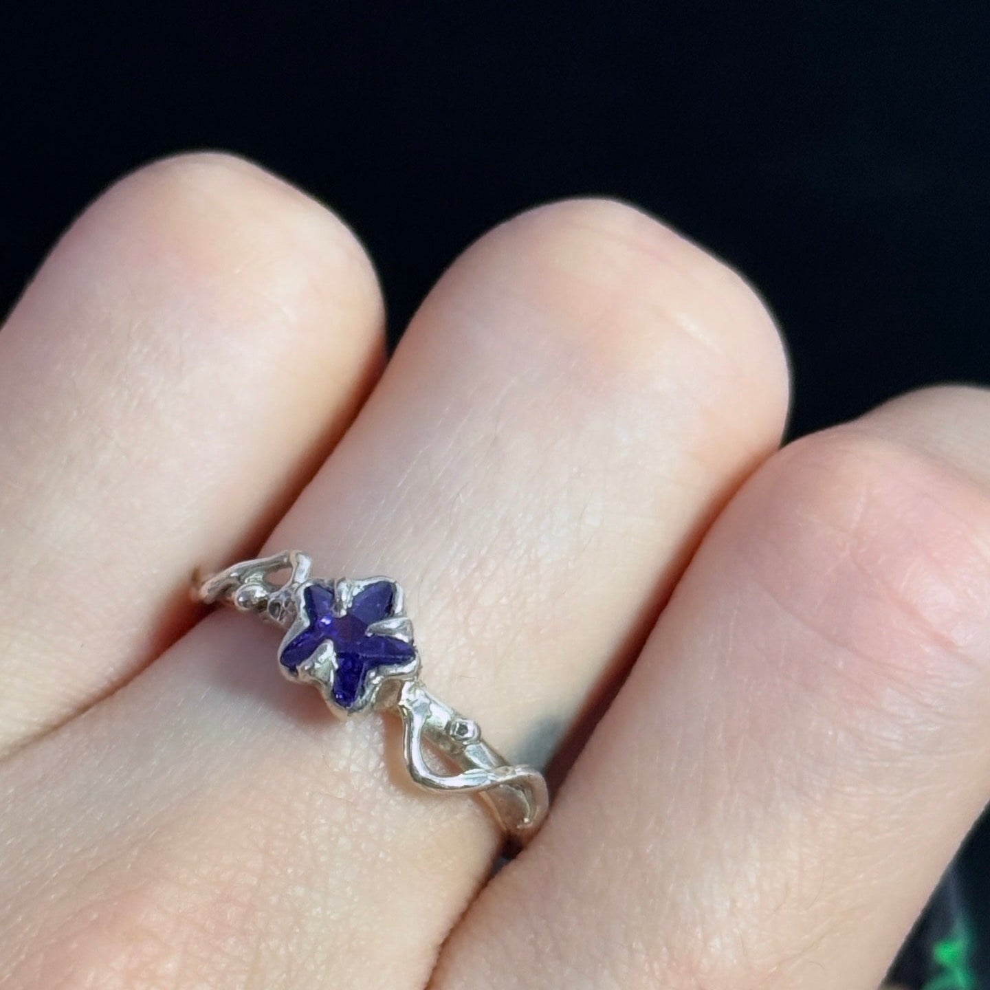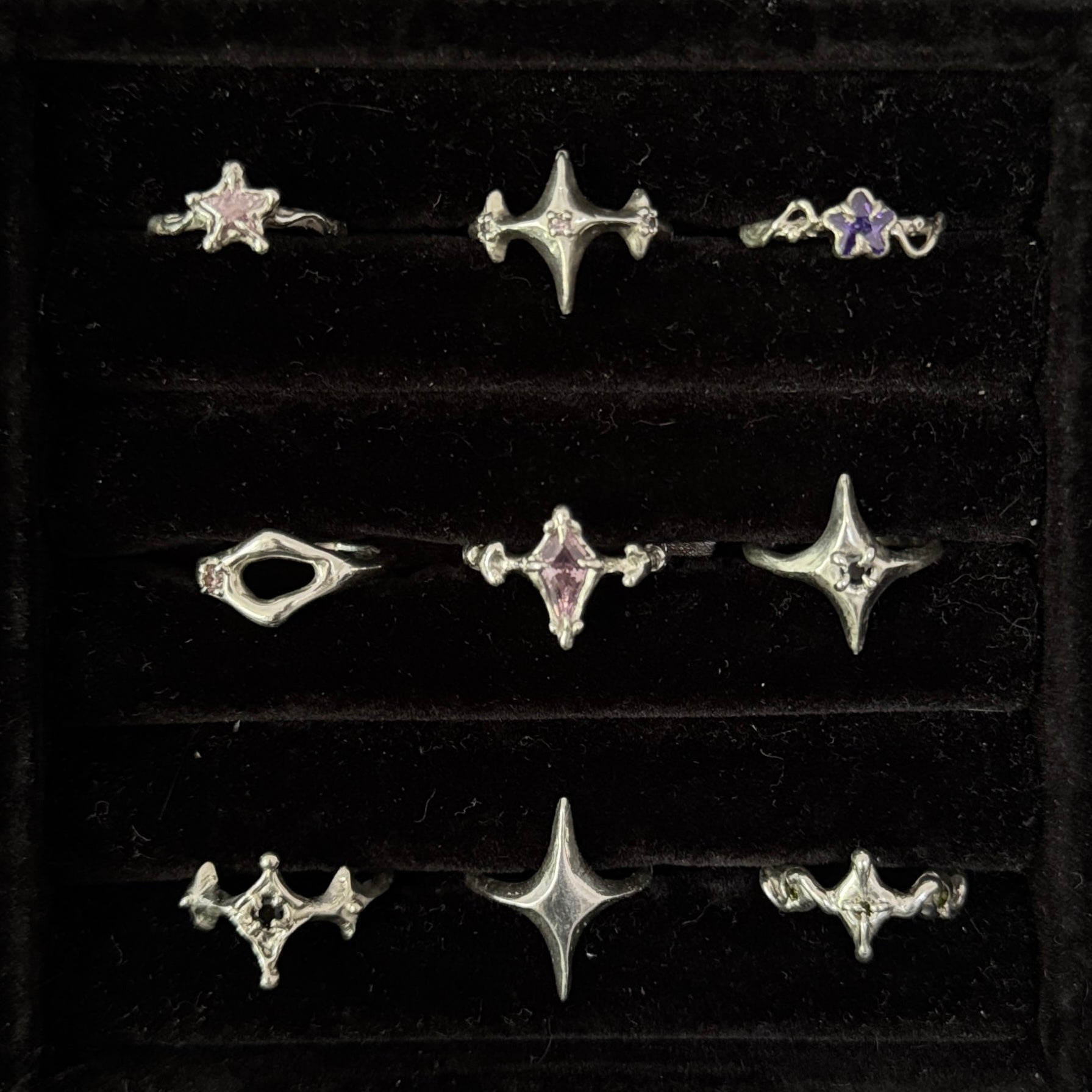 Handmade with recycled 925 sterling silver, these one off star rings feature textured patterning and unique gemstones that pair with crisp star shapes.